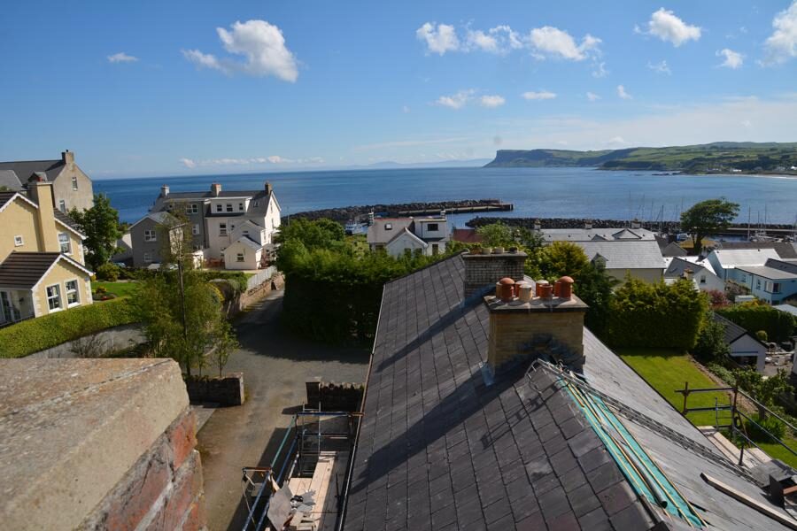 Wir sind in Ballycastle ganz im Norden Irlands angekommen. Unser Quartier hier ist sehr speziell – wir wohnen im Ballycastle Tower und geniessen auf drei Stockwerken die Aussicht aufs Meer. Die steinerne Wendeltreppe führt als Hintertreppe durch das ganze Haus und endet auf dem Dach des Towers in einer sehr geräumigen Dachterrasse mit weitem Rundblick.