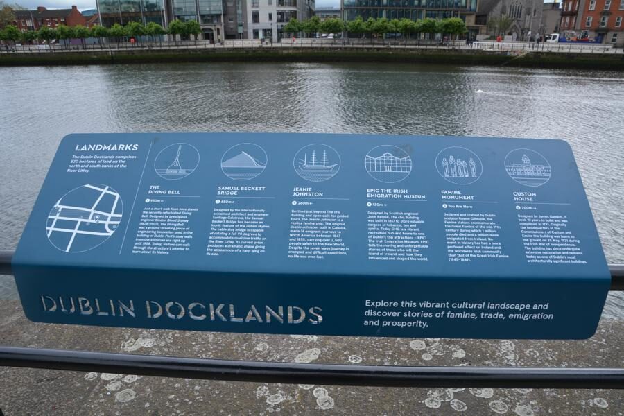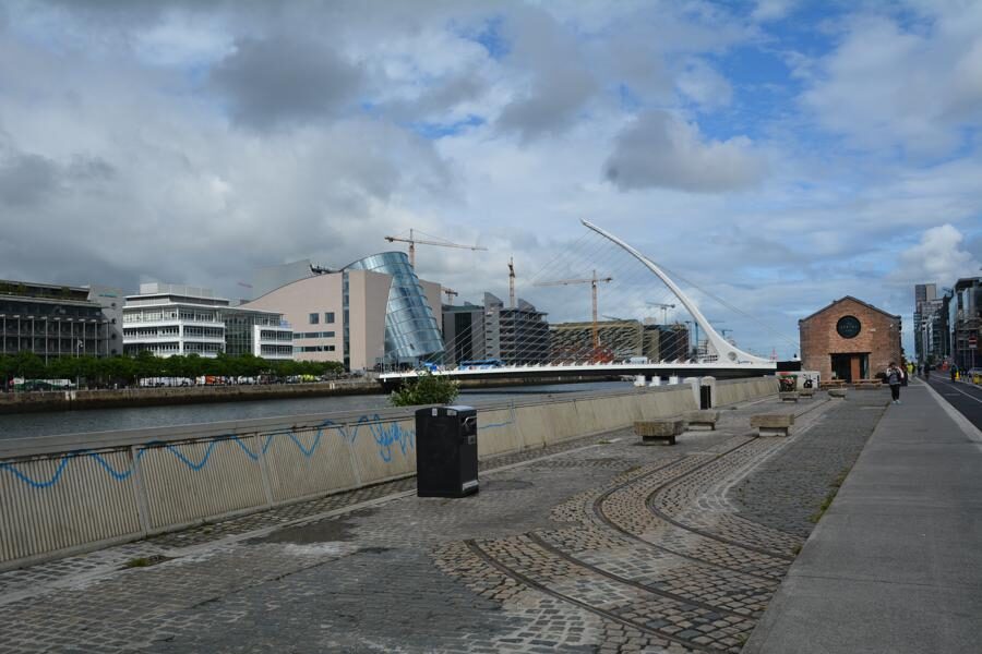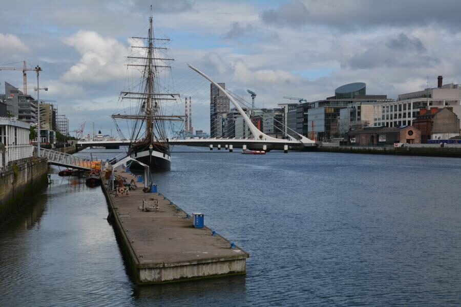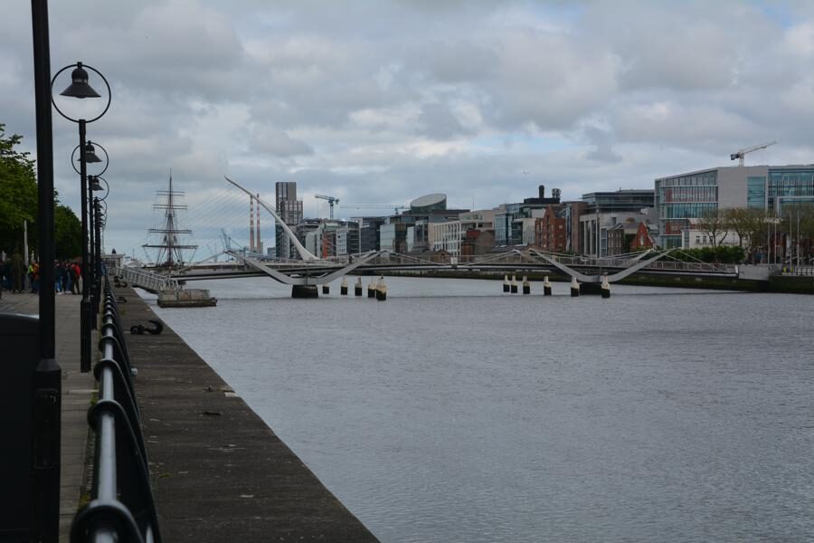 Heute gönnen wir uns einen langen, genussvollen Spaziergang entlang der Liffey, von der Innenstadt bis zu den Dublin Docklands. Wir sehen beeindruckende Brücken und andere Sehenswürdigkeiten – in order of appearance: die Grattan Bridge, die Millennium Bridge, die Ha’penny Bridge, den Bachelor Inn, die Mellows Bridge, die Butt Bridge, das Famine Monument, die Seán O’Casey Bridge, das EPIC Irish Emigration Museum (das wir leider aus Zeitgründen nicht besuchen können…), das Schiff Jeanie Johnston und die Samuel Beckett Bridge.