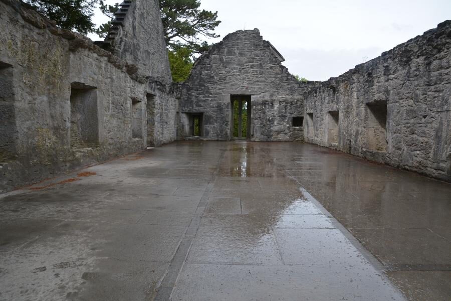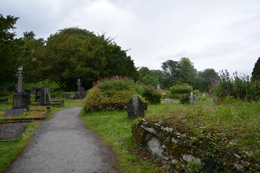 Auf unserem Spaziergang kommen wir an der Muckross Abbey vorbei. Die Gebäude, die aus verschiedenen Jahrhunderten stammen, sind teilweise noch sehr gut erhalten und begehbar. Der umliegende Friedhof wird heute noch genutzt.