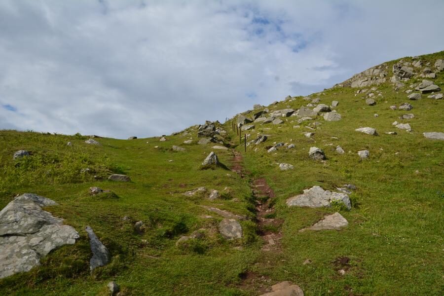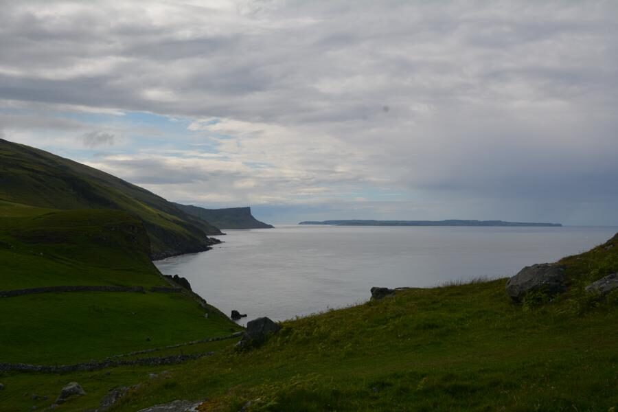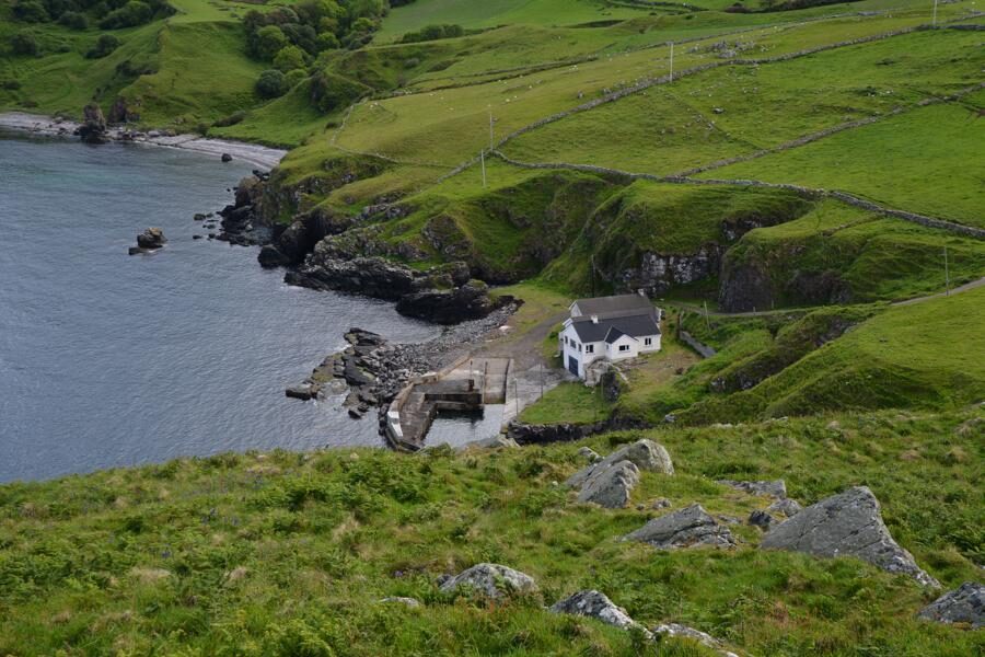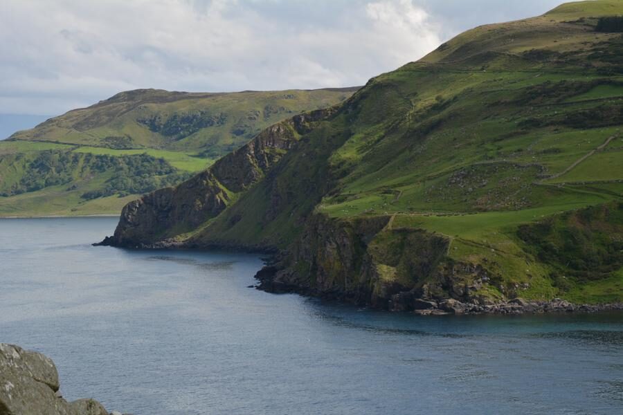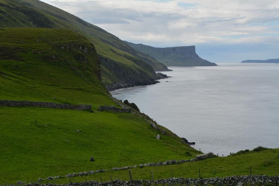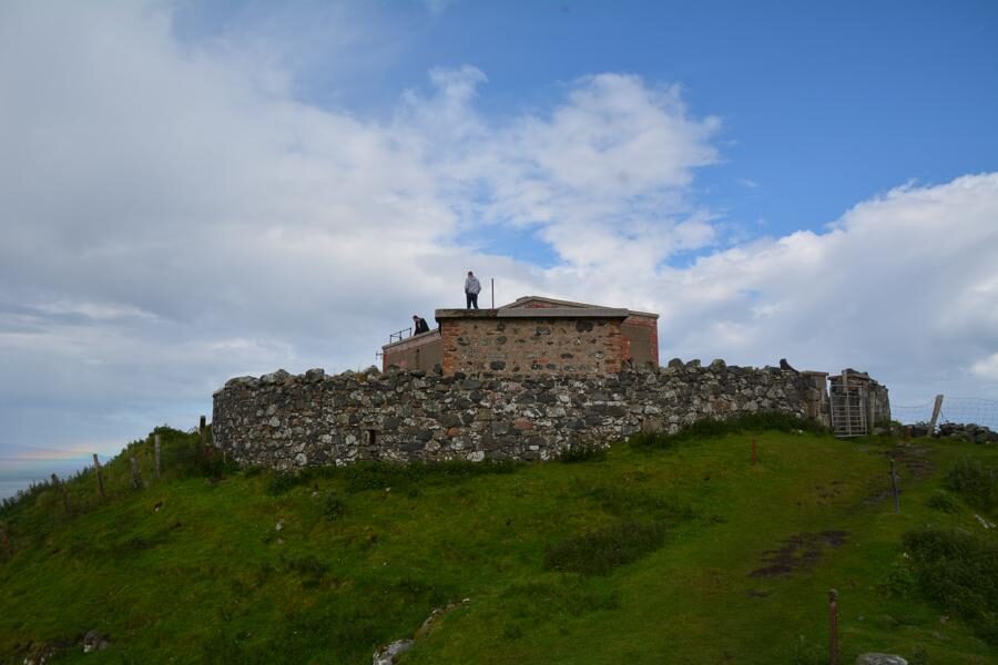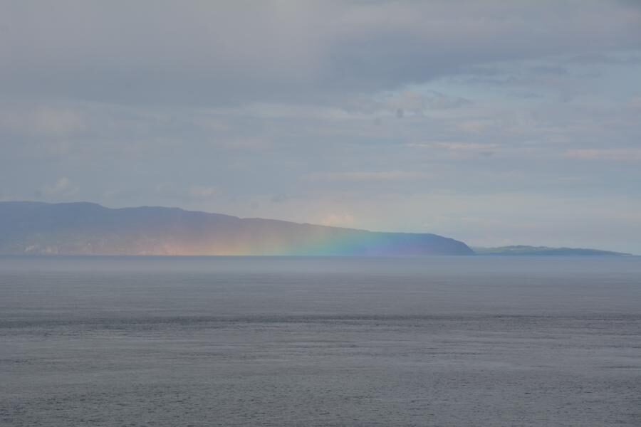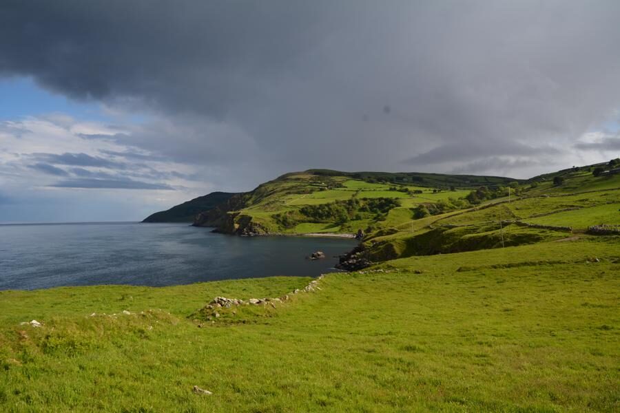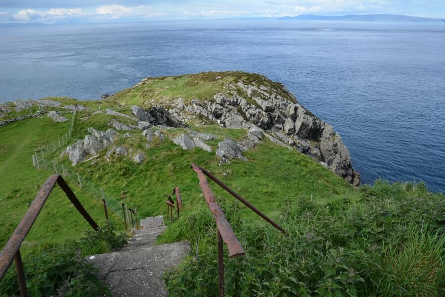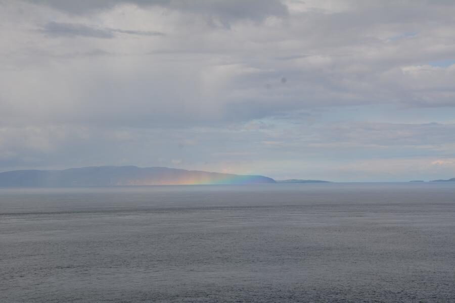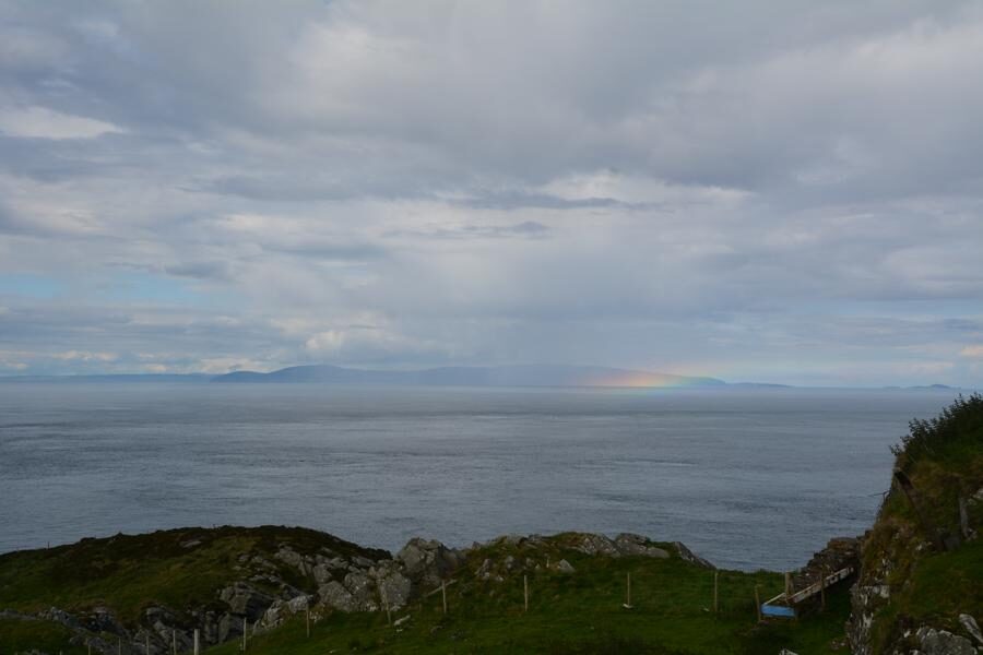 Von Ballycastle aus ein Stück weiter östlich an der Küste liegt der Torr Head mit der Ruine der Torr Head Coast Guard Station. Dies ist der Ort Irlands, der am nächsten zu Schottland liegt – der Mull of Kintyre ist nur 19km entfernt und vom Torr Head aus gut sichtbar. Heute abend wird er gerade von einem Regenbogen wunderschön erleuchtet. Die Torr Head Coast Guard Station diente von 1822 bis 1922 als Küstenwache und Signalstation für die Nordkanalschifffahrt. 1922 wurde die Torr Head Coast Guard Station im Zuge des irischen Unabhängigkeitskrieges niedergebrannt.